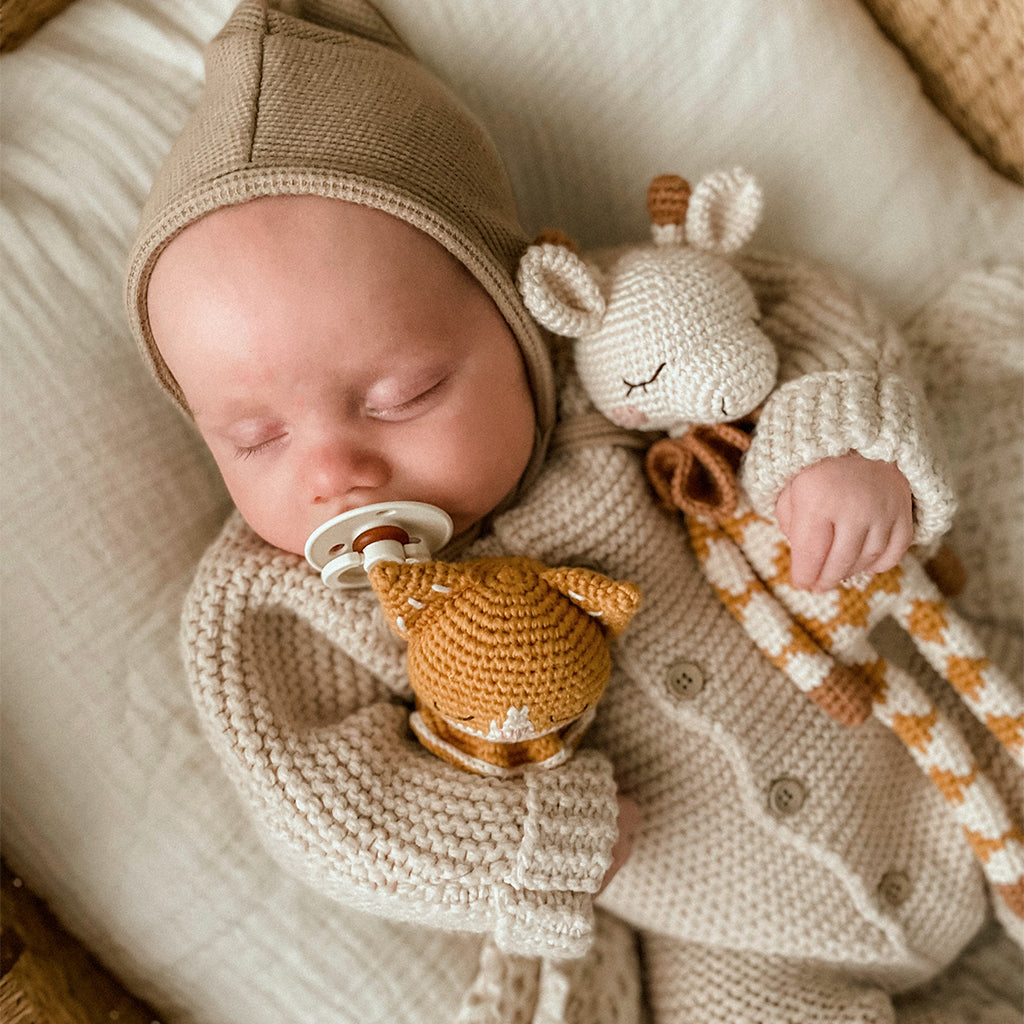 Die niedliche Giraffe in Ochre von Patti Oslo kann es kaum erwarten, in den Armen ihres Babys zu liegen und alle Abenteuer mit ihm gemeinsam zu erleben. Die aus GOTS-zertifizierter Bio-Baumwolle handgefertigte Giraffe verfügt über ein liebenswertes Häkel-Design und ist auch als Dekoration im Kinderzimmer oder als Accessoire beim Baby-Fotoshooting ein echter Hingucker.