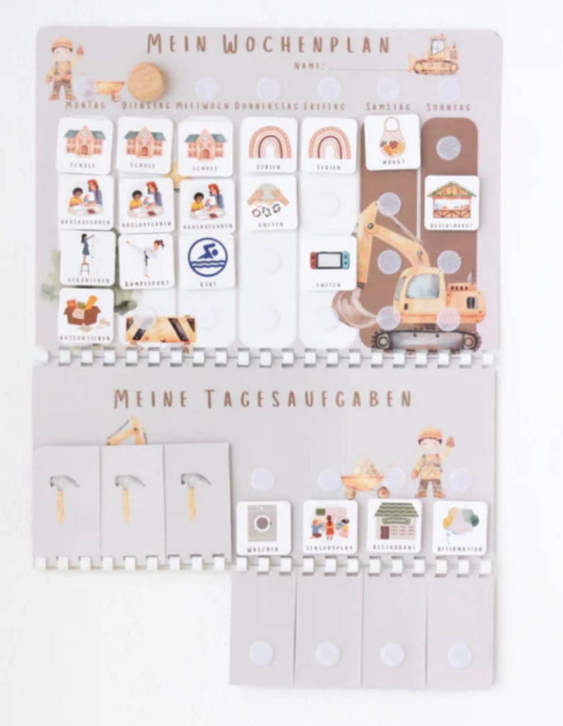 Wochenplaner mit Baustellen-Motiv und 3 Routineplänen von ROUTINCHEN