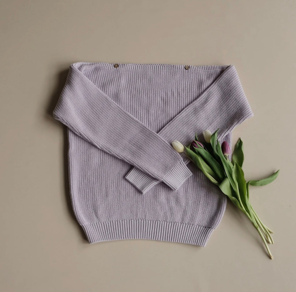 Kuschelig weicher, grob gestrickter Pullover aus GOTS-zertifizierter Bio-Baumwolle in unserer exklusiven Farbe Lavender. Der Pullover überzeugt durch seinen lässigen Schnitt - und das das ganze Jahr über!