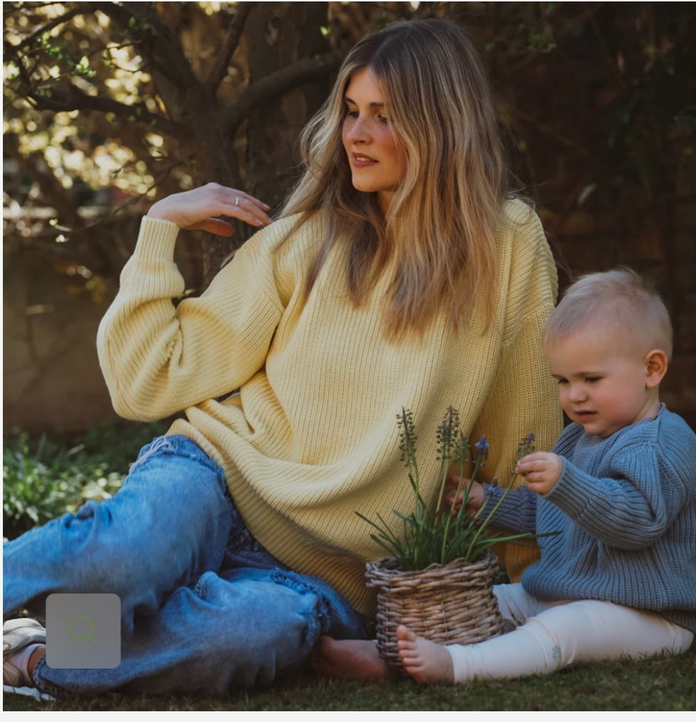 Kreiere perfekte Looks indem du den Strickpullover mit Deinem Liebling zusammen trägst. Für einen wunderschönen Mini Me Look.