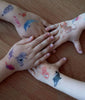 Bitte beachte, dass die Tattoos nicht auf offene Hautstellen, in der Nähe von Augen und Mund oder auf sensible bzw. gereizte Haut aufgebracht werden sollen.